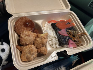 19:40、コストコで給油を行い、駐車場に移動して夕ご飯にします。ラムー弁当です。 |