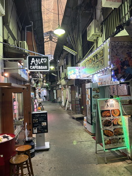 食後、鶴橋駅に向かいながら商店街を歩く。戦後、日本最大級のコリアンタウンが形成された地というのは伊達じゃないね。あちこちにハングル文字があふれています。