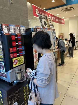 大津SA内の売店で朝食を調達します。パンを買って、コーヒーを買う。 |