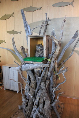 入場してすぐのところにいたのがミミズク。耳のような見た目の羽角があるのでミミズクだそう。かわいい・・・。 |