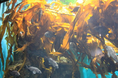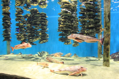 海藻のうみでは、コンブが生えていて、その周りを根魚が漂っています。クロソイかなぁ? |