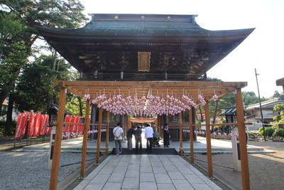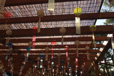 おみこしも展示してありました。お祭りが近いのかな?では、風鈴の下を歩いて駐車場に戻りましょう。