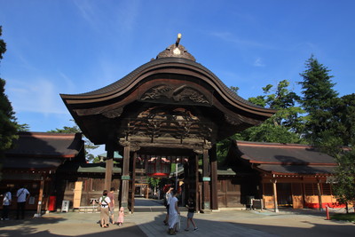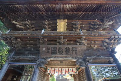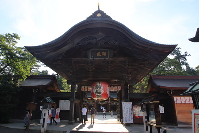 楼門・随身門の前にきました。1812年に建てられた門。ケヤキで作られているそうです。結構立派です。 |