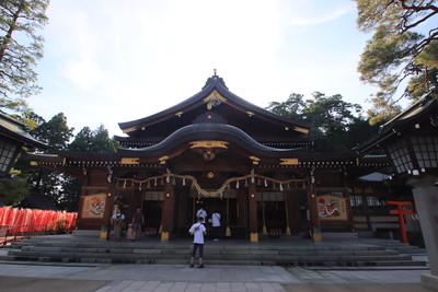 そして唐門(左)を抜けて拝殿へ。拝殿は千鳥入母屋唐破風の権現造りです。いろんな形の屋根を重ねた建築様式ってことらしい。では、いろいろお願い事をしておきましょう。