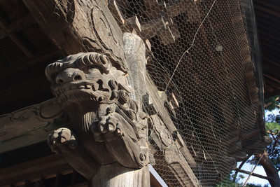楼門・随身門をくぐる。獅子が飛び掛かってきそうな彫刻がありました。 |
