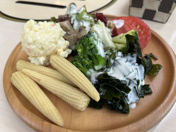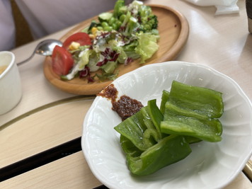 入店して料理を注文。ランチセットはサラダバーがセットなのでサラダをもらってきます。キリンビールのレストランということなのか、サラダバーもかなりおいしい。あとね、ピーマンって生で食べるんだね。味噌をつけて食べたらおいしかった。 |