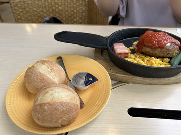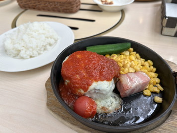 しばらくしたら、チーズハンバーグが運ばれてきました。みのり豚100%のハンバーグ。ふっくらしているハンバーグで美味しかった。ポーク100%ってこんな感じなんだね。肉肉って感じじゃないんだねぇ。お腹いっぱいいただきました。