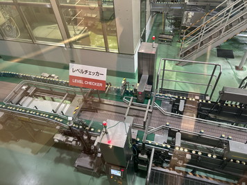 この建物は缶や瓶にビールを詰める工程があります。左はレベルチェッカー。既定の量までビールが入っているのかチェックする検査機がありました。ちょうど晴れ風が製造されていることろです。