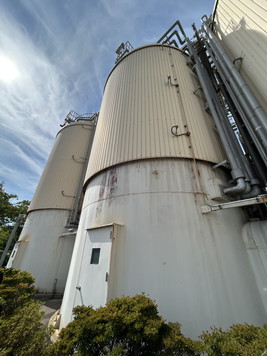 こちらも貯蔵タンクだよね。大きい。この大きな貯蔵タンクの横を歩きながら、案内係のお姉さんとお話をしました。どちらから?って聞かれたので富山からって答えると、どういった経緯で仙台工場へ?という話になったので、30年ほど前の学生時代に工場見学できたんだよね〜。それで、また来たくなって・・・という話をしました。ちょうど30年前に大学の工場見学ツアーでここに来たんですね。確かその時は、隣の東洋製罐株式会社の工場も見学したような・・・。 |