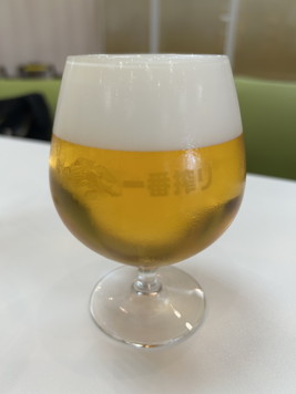 そしてペンギン姉さんはキリン一番搾り生ビールをいただきます。カンパーイ! |