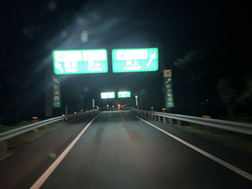 | 21:00、新潟中央JCTを通過。ここから北陸道です。まだ結構遠い。 22:00過ぎ、大潟PAで車中泊としました。 |